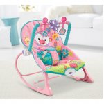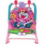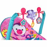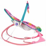 Balansoar multifunctional pliabil cu vibratii, spatar reglabil in 2 trepte si bara de jucarii detasabila, Pink Monkey