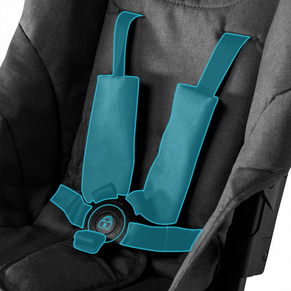 Caruciorul Fjallrav are o centura de siguranta in 5 puncte si o curea pentru picioare.