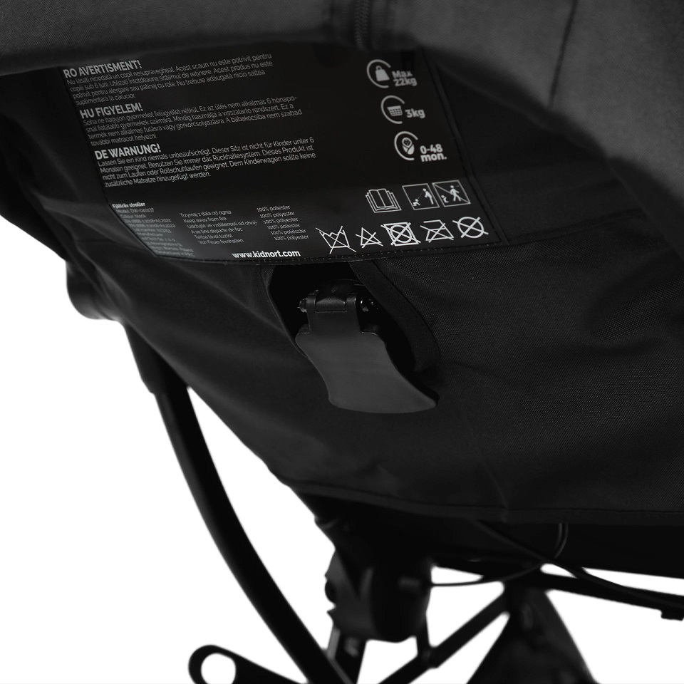 Carucior pentru copii, Kidnort Fjallrav Black, cu pliere compacta, suspensie integrala, spatar si viziera reglabile, pana la 22 kg, accesorii incluse, suport pentru pahar, husa transport