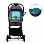Poate fi depozitat atunci cand este pliat in pozitie verticala. Pentru confortul parintelui, exista un buzunar suplimentar mare pe spatele spatarului, un cos sub carucior si un suport pentru pahare.