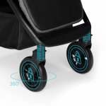 Caruciorul are absorbtie de socuri pe toate rotile, ceea ce ofera copilului un confort ridicat la condus.