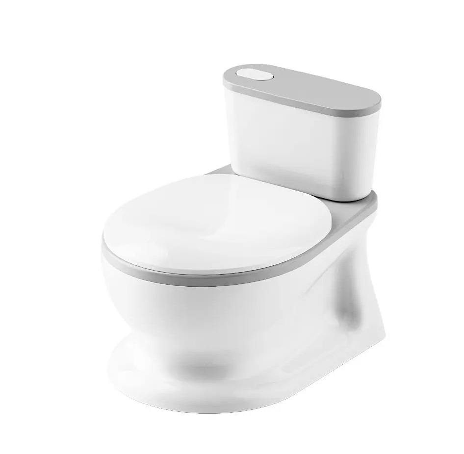 Olita tip minitoaleta pentru copii Little Mom Grey cu sunete, colac din PVC, vas colector detasabil, capac rabatabil cu functie de spatar si suport pentru servetele, dimensiuni 27x22x32 cm