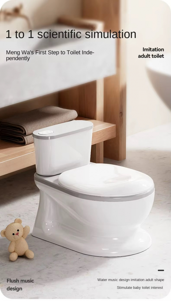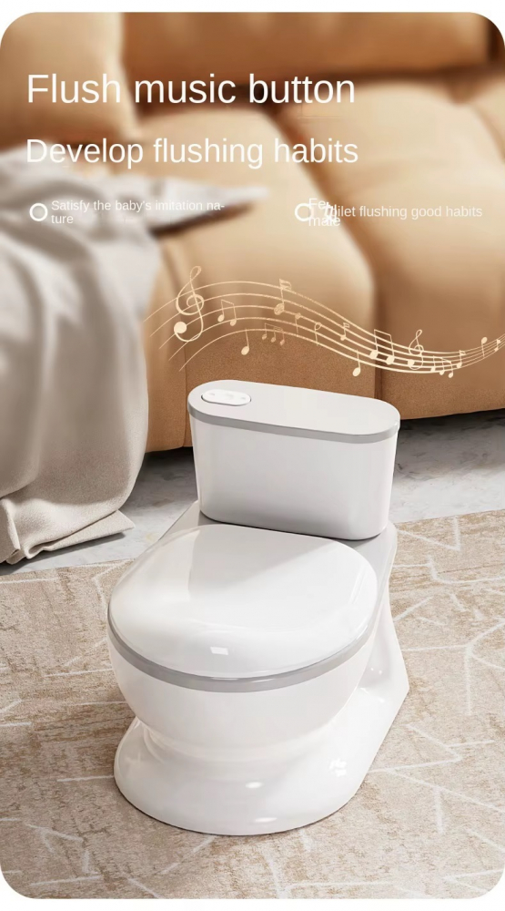 - Suntete interesante pentru copii: la apasarea butonului specific, olita va emite sunete de „eliberare a apei”.