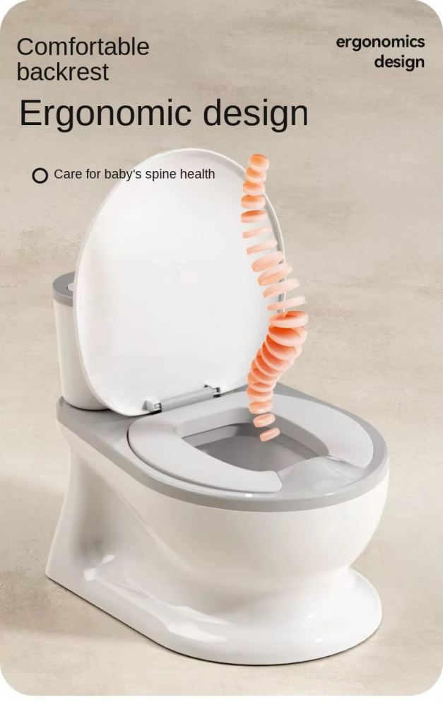 - Cu margini rotunjite si o baza stabila, copilul se va simti in siguranta si confortabil pe olita, creand un mediu pozitiv pentru a incepe procesul de invatare a igienei.
