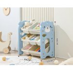 Organizator pentru copii Nichiduta Garden Blue Bear, cu rafturi deschise, pe 3 nivele, include 5 cutii mici si 2 cutii mari, dimensiune 66 x 33 x 66 cm