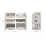 - Proiectat cu 6 cutii de depozitare, acest organizator poate contine jucarii, papusi si alte obiecte pentru a ajuta copiii sa isi dezvolte un bun obicei de organizare.