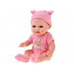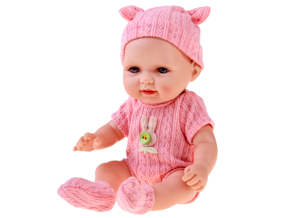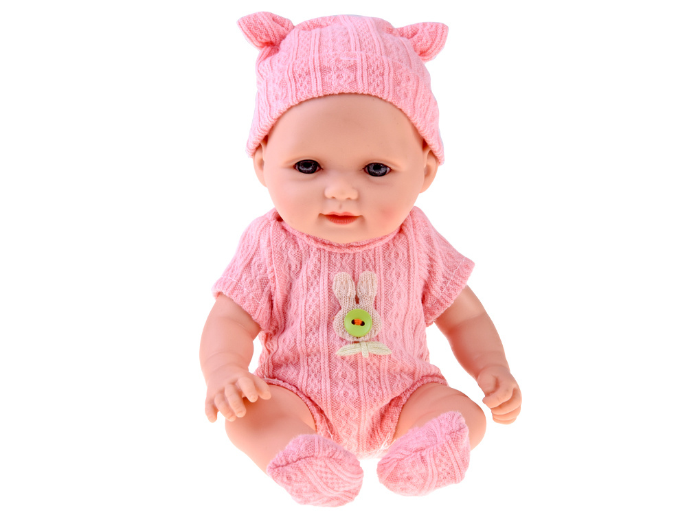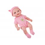 Papusa bebelus roz, accesorizat cu bascuta si sosete asortate, inaltime 26 cm