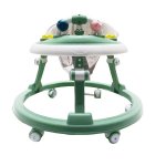 Premergator pentru copii Little Mom Light Green educational, cu lumini si sunete, pliabil si ajustabil in inaltime, cu 6 roti silentioase, dimensiune 67 x 67 x 46 cm