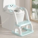 Reductor WC copii cu scarita 2 in 1 Little Mom Blue Teddy, pliabil cu colac moale detasabil, suport lat pentru picioare, manere ergonomice si protectie antistropire, inaltime reglabila, compatibilitate universala