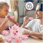 * Setul imita un adevarat set de cafea, si cu autorul acestuia, fetitele isi vor dezvolta imaginatia si vor experimenta jocurile de rol;
