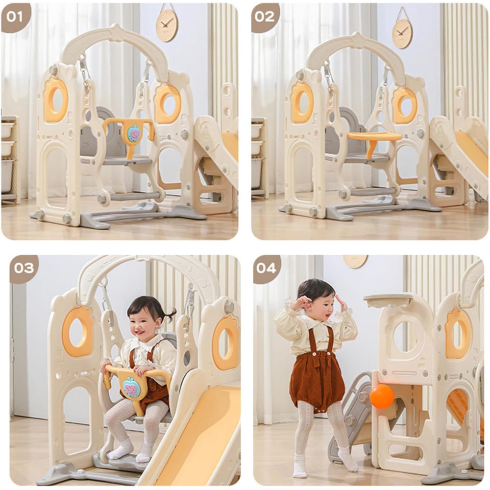 * Hai sa ne distram de trei ori mai mult! Cu tobogan, leagan si cos de baschet, aventura nu se termina!