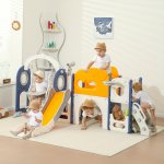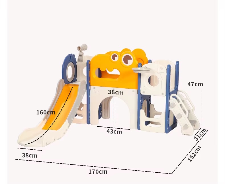Acest ansamblu de joaca colorat si versatil este conceput pentru a oferi copiilor ore intregi de distractie si activitate fizica in siguranta.