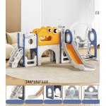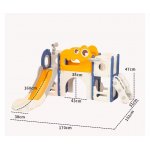 Tobogan : Include un tobogan lung si ondulat de culoare galbena, cu o panta lina, perfect pentru coborari sigure si pline de veselie.